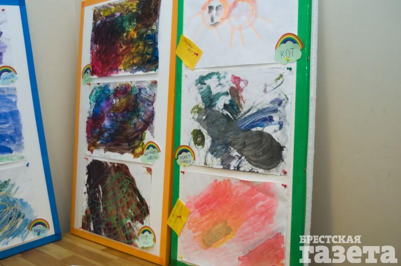 В малом зале «Прасторы КХ» разместилась экспозиция «Дождик рисует радугу» Матвея Вельгаса. Кисти и краски для мальчика — важный способ общения, ведь он не разговаривает. В изостудии Матвей занимается с 3,5 лет и очень любит рисовать.
