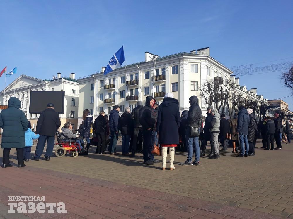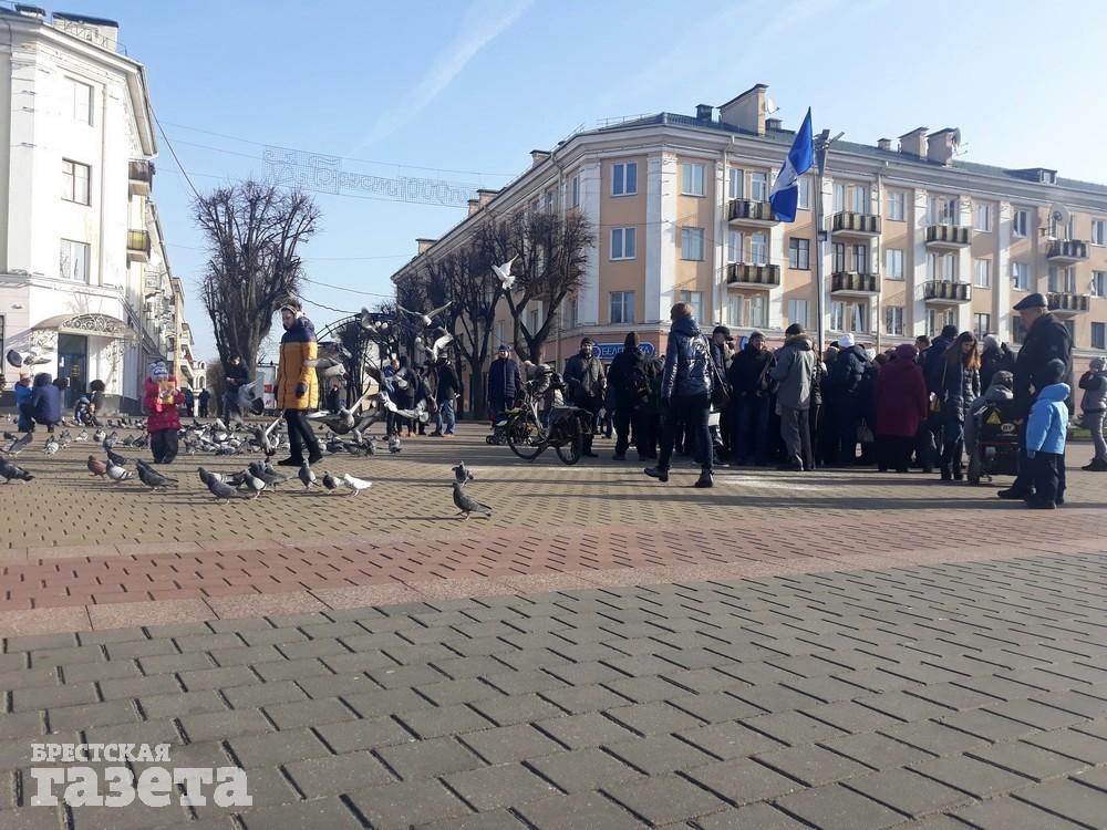 Более 120 человек вышли днем 9 февраля на площадь Ленина в Бресте, чтобы покормить голубей и тем самым в очередной раз показать, что они против аккумуляторного завода рядом с городом.