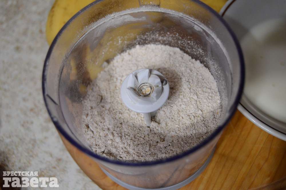 Готовим: Перемелите овсяные хлопья в муку при помощи блендера или кофемолки.