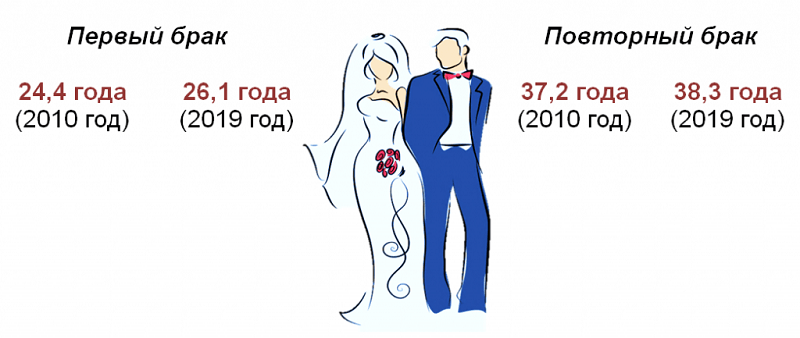 На момент переписи из числа женщин в возрасте 15 лет и старше в браке или незарегистрированных отношениях состояли 52,7%. Продолжает расти средний возраст вступления в брак и, соответственно, рождения детей. В 2019 году 87,6 тысяч женщин стали мамами. Из всех рожденных детей 38,7% – первенцы, на долю вторых рождений приходится 38,3%, третьих – 16,3%, четвертых и более – 6,7%.