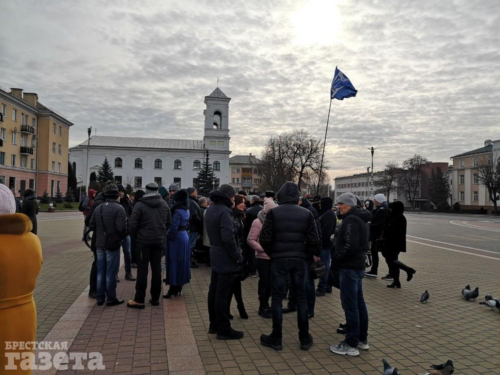 Более 100 человек вышли днем 16 февраля на площадь Ленина в Бресте, чтобы покормить голубей и тем самым в очередной раз показать, что они против аккумуляторного завода рядом с городом.