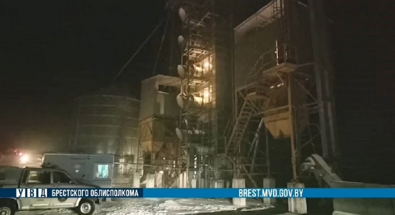 Пожар на складе зерна в Барановичах. Скриншот видео УВД Брестского облисполкома
