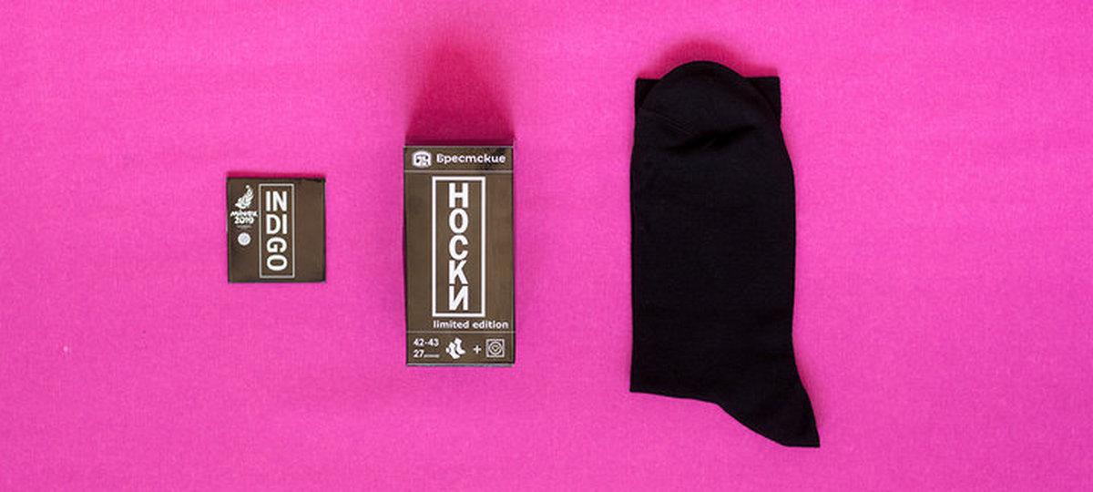 Лимитированная серия брестской чулочки вышла в коллаборации с белорусским дистрибьютером лекарственных препаратов ОДО «Фармин», которое выпускает презервативы под брендом Indigo. В каждый набор входит одна пара классических черных носков с упаковкой контрацептива.