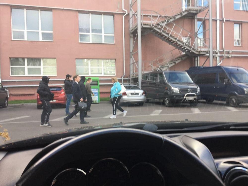 На парковке возле штаба несколько характерных микроавтобусов с тонированными стеклами, один из них без номеров.