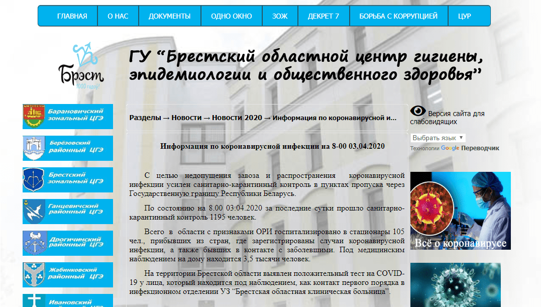 На территории Брестской области выявлен положительный тест на COVID-19 у лица, который находится под наблюдением, как контакт первого порядка в инфекционном отделении УЗ «Брестская областная клиническая больница».