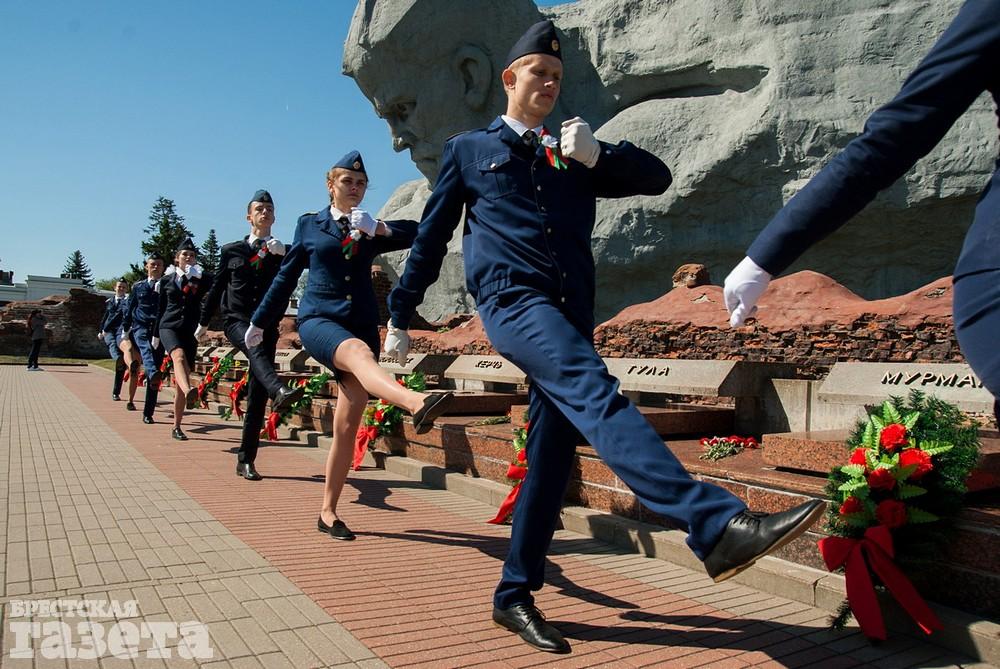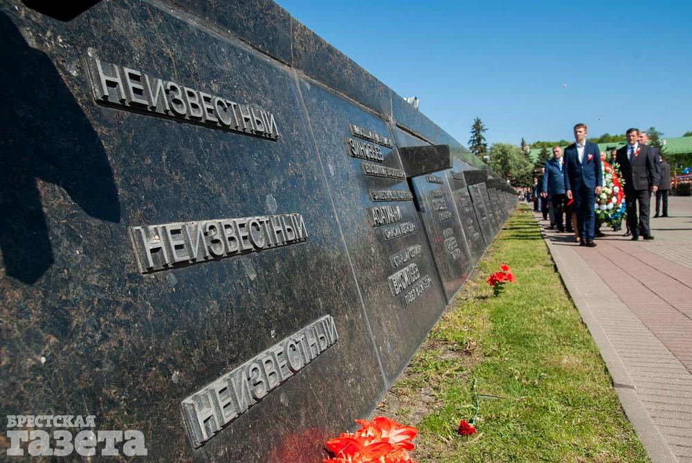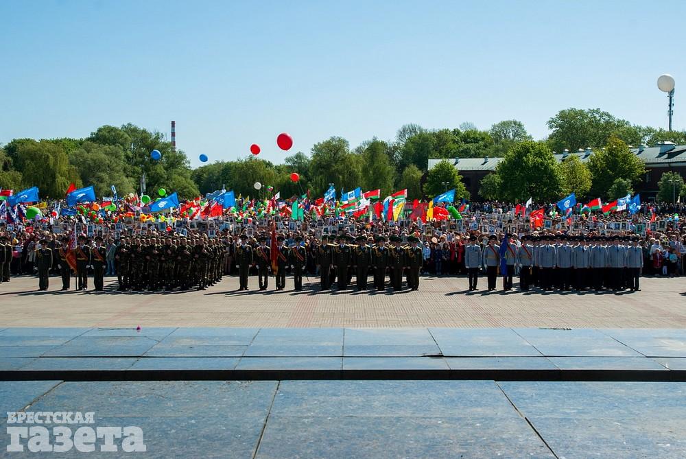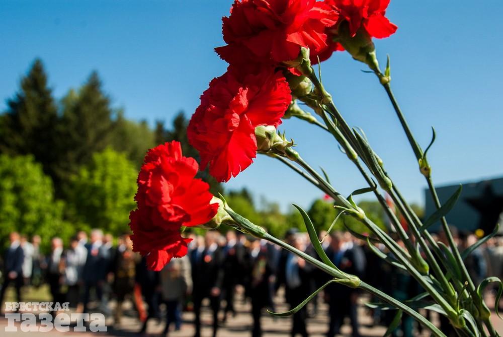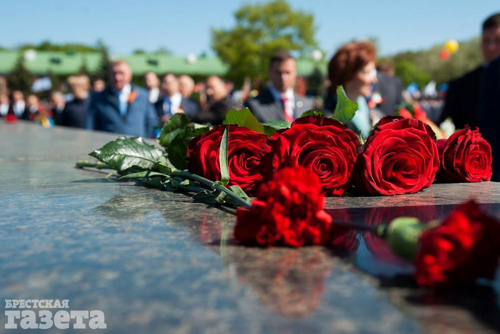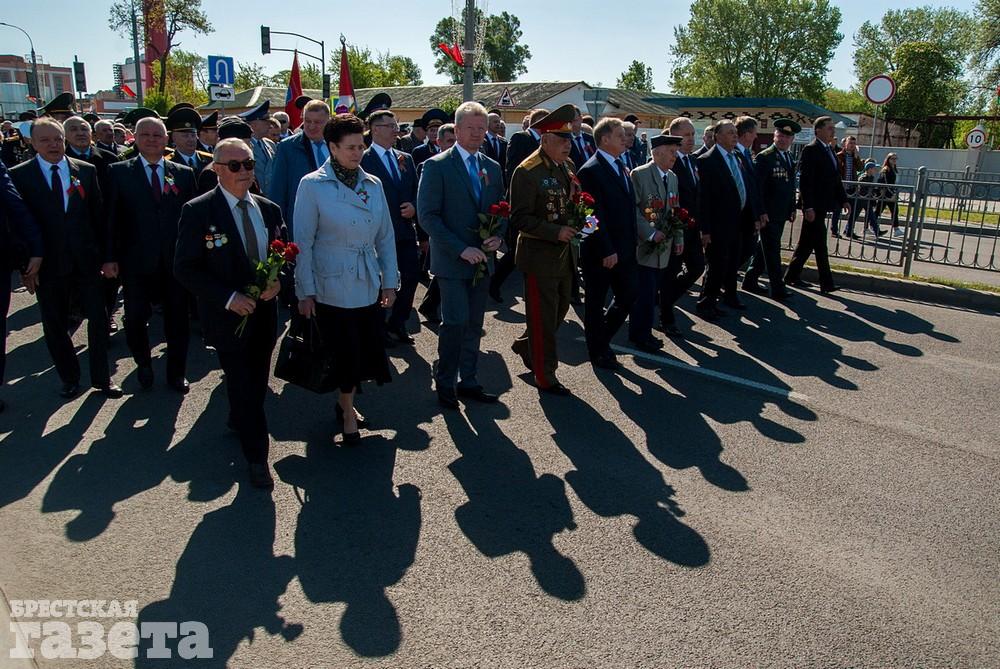 Руководство области и города, ветераны, представители общественных организаций, трудовых коллективов, молодежь 9 Мая традиционно организованной колонной проследовали к Брестской крепости. Вместе с брестчанами в мемориальный комплекс пришли гости города. К Вечному огню и плитам некрополя возложили цветы, память павших на войне почтили минутой молчания.