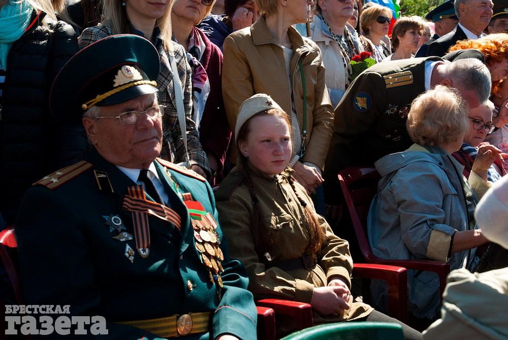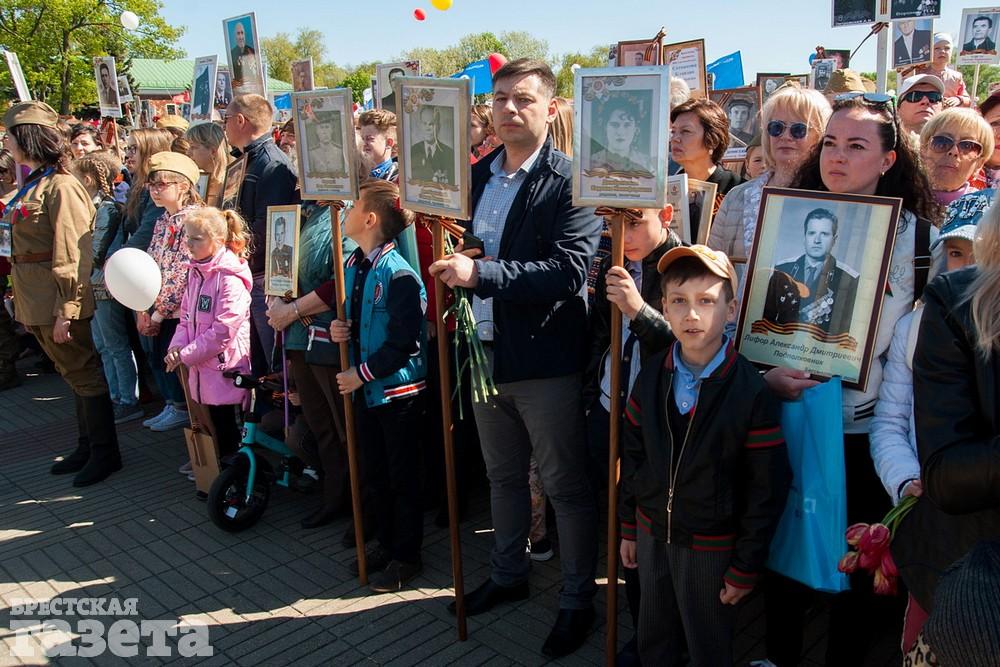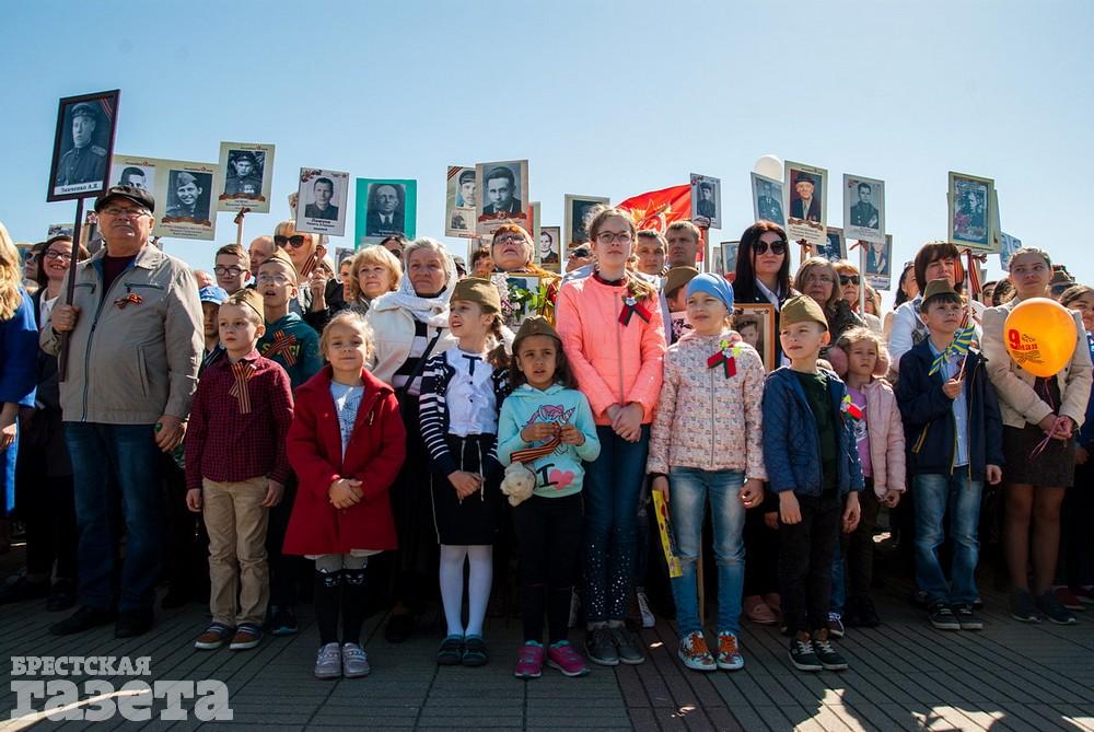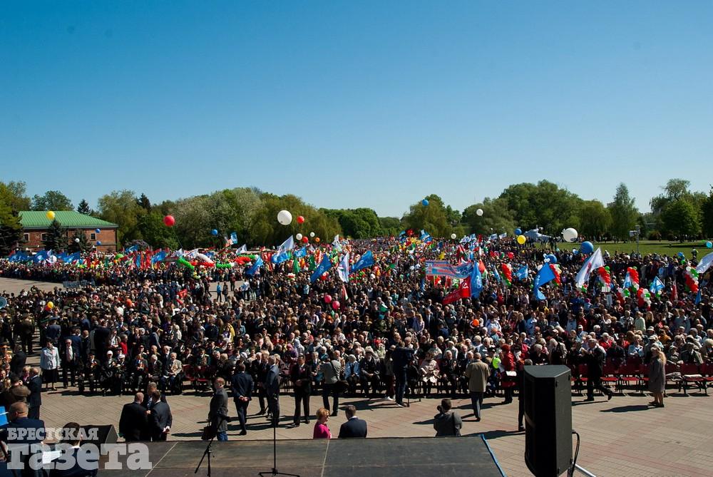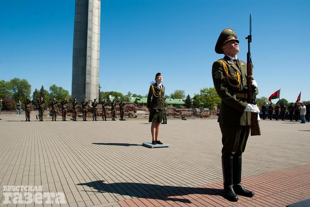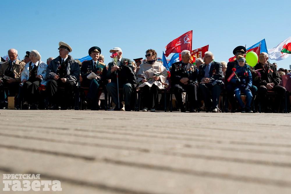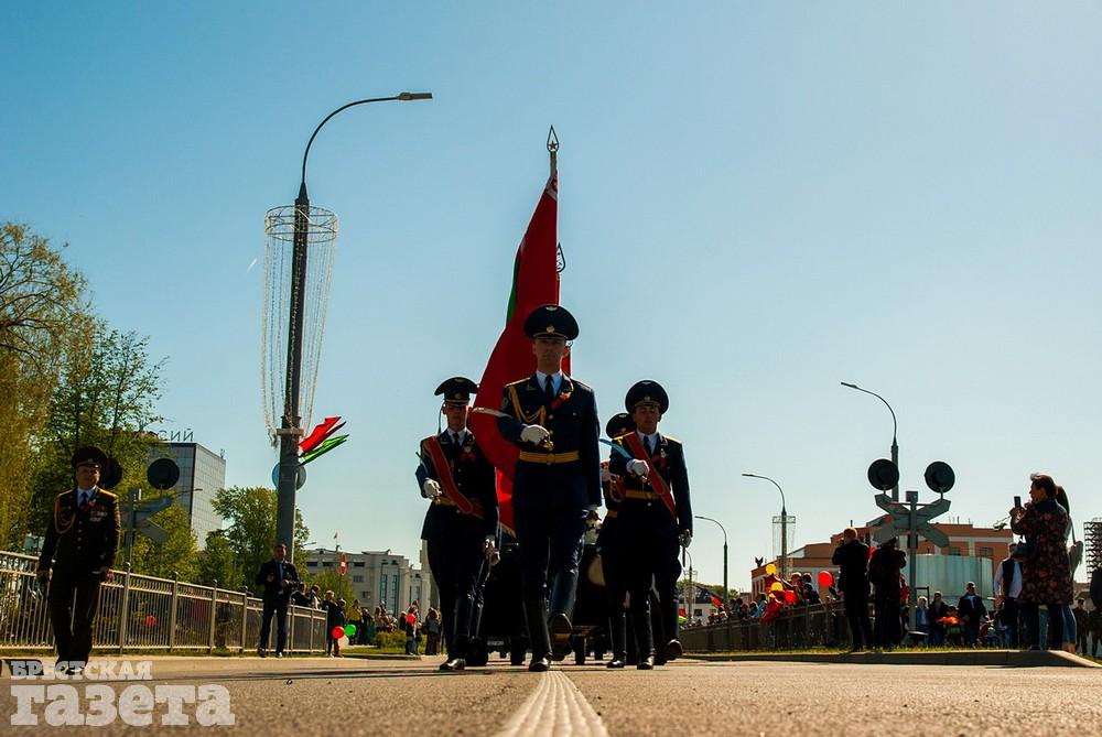 Руководство области и города, ветераны, представители общественных организаций, трудовых коллективов, молодежь 9 Мая традиционно организованной колонной проследовали к Брестской крепости. Вместе с брестчанами в мемориальный комплекс пришли гости города. К Вечному огню и плитам некрополя возложили цветы, память павших на войне почтили минутой молчания.