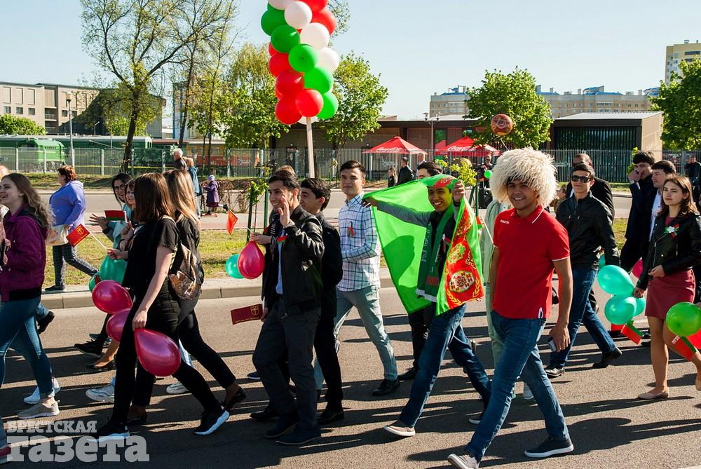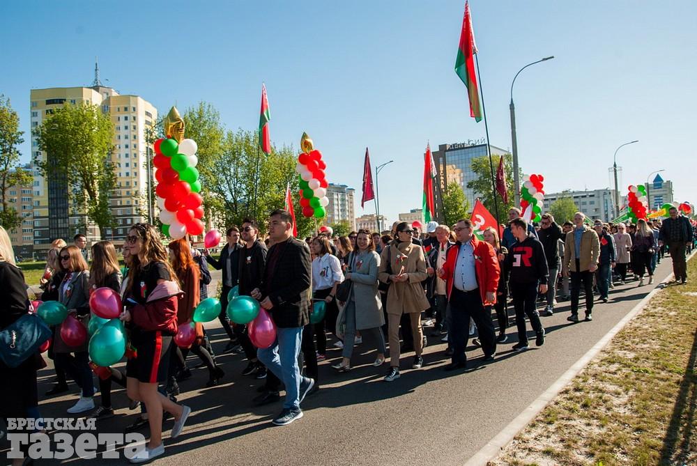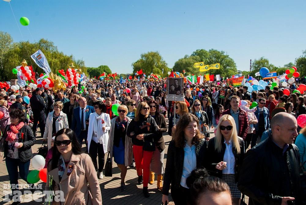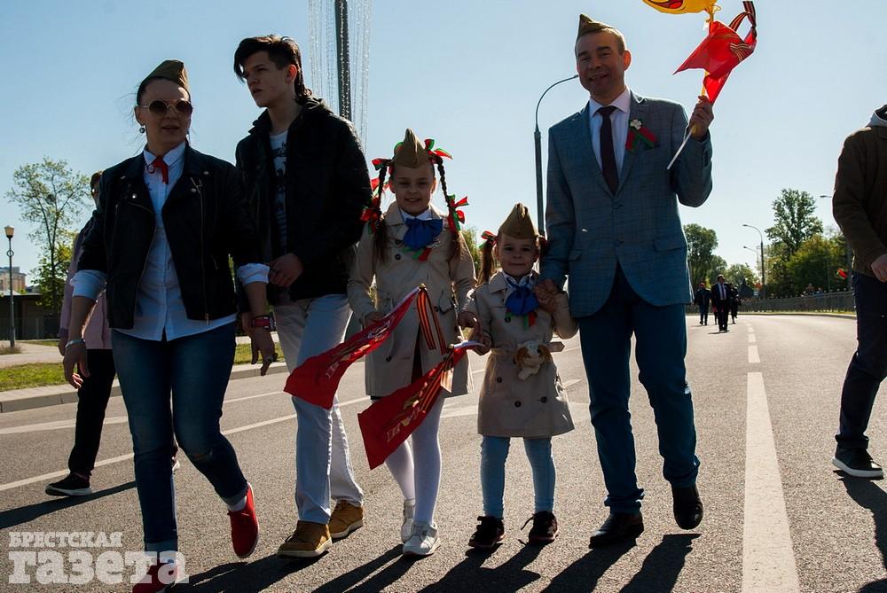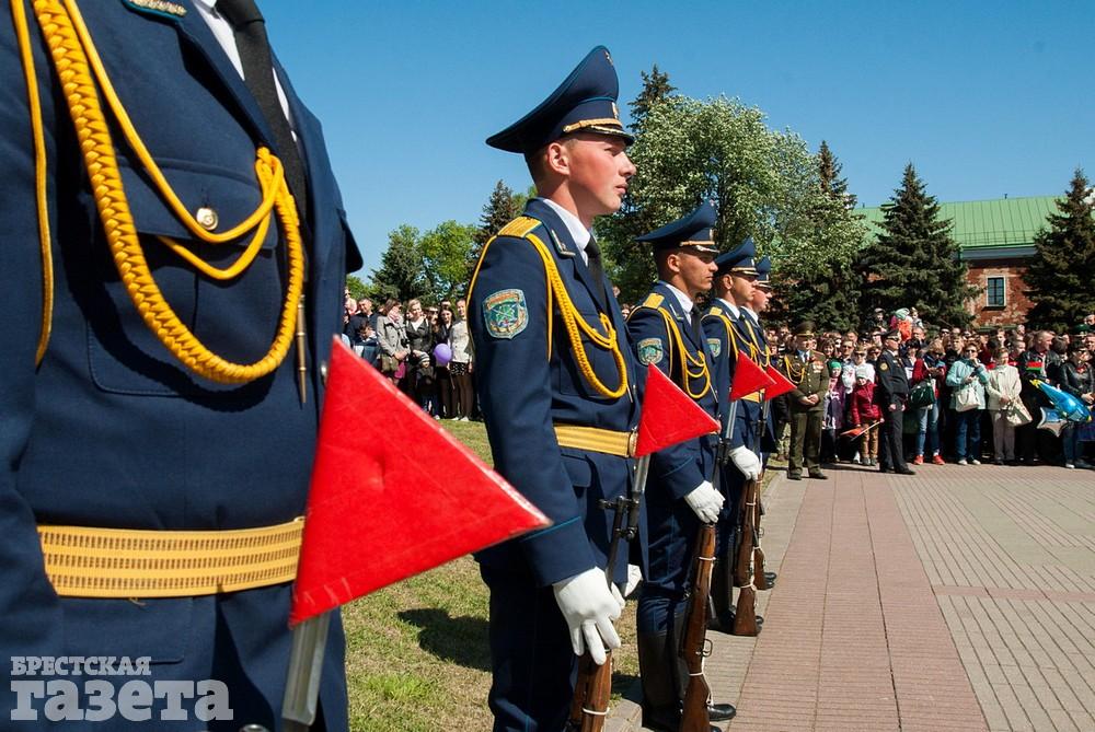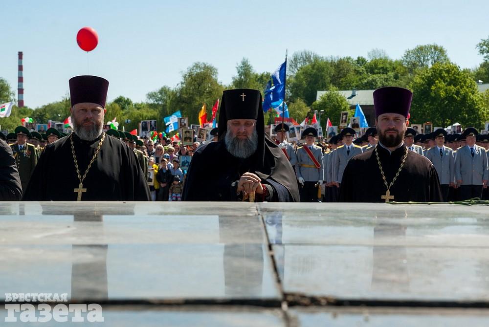 Руководство области и города, ветераны, представители общественных организаций, трудовых коллективов, молодежь 9 Мая традиционно организованной колонной проследовали к Брестской крепости. Вместе с брестчанами в мемориальный комплекс пришли гости города. К Вечному огню и плитам некрополя возложили цветы, память павших на войне почтили минутой молчания.