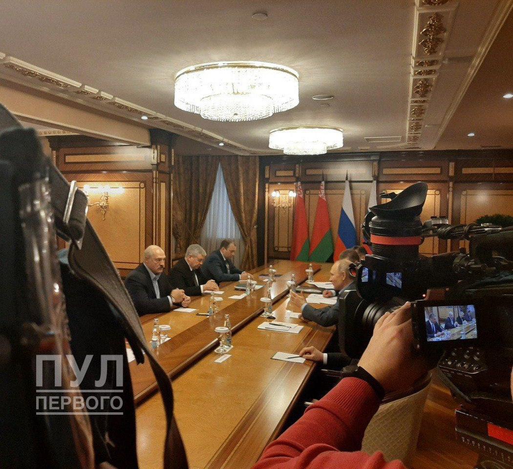 Встреча Александра Лукашенко и Владимира Путина проходила 7 февраля в сочинской Красной Поляне в доме приемов официальных делегаций «Лаура» в усеченном составе — из-за непогоды часть российской делегации не смогла вовремя добраться до Сочи.