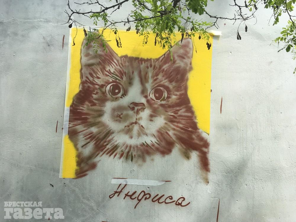 В центре Бреста появился стрит-арт с изображениями животных, спасенных от смерти. Его героями стали кошка Анфиса, собаки Чита и Белла.