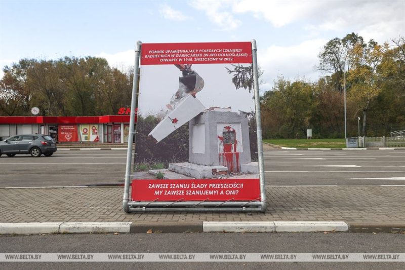 В крупнейшем на беларуско-польской границе пункте пропуска «Брест» появились билборды о памятниках советским воинам, разрушенным в последние годы по решению польских властей. Об этом сообщает госинформагентство.
