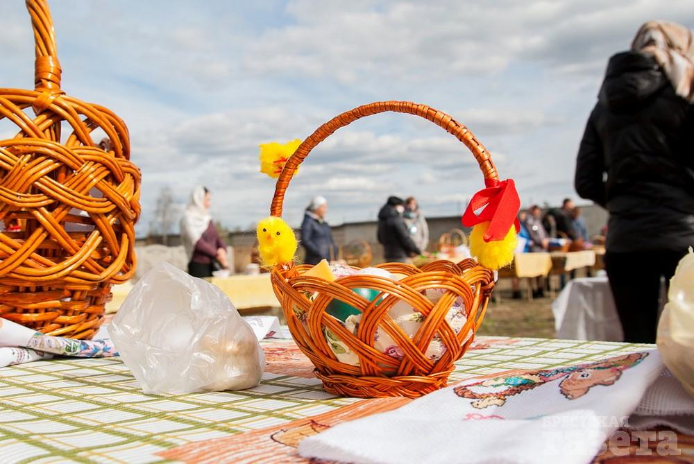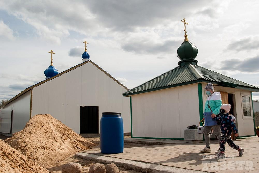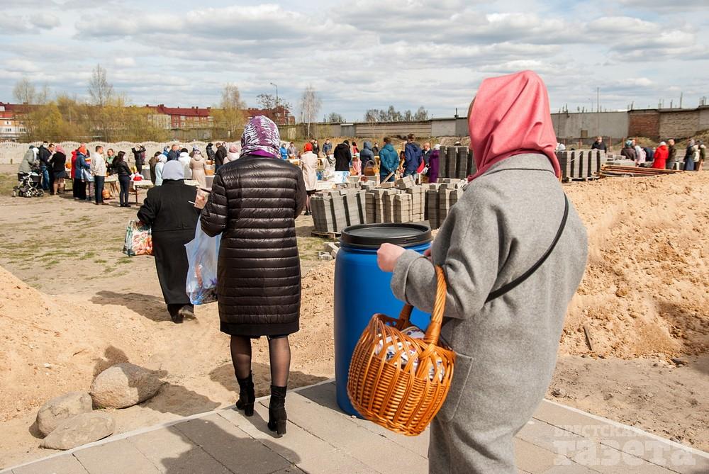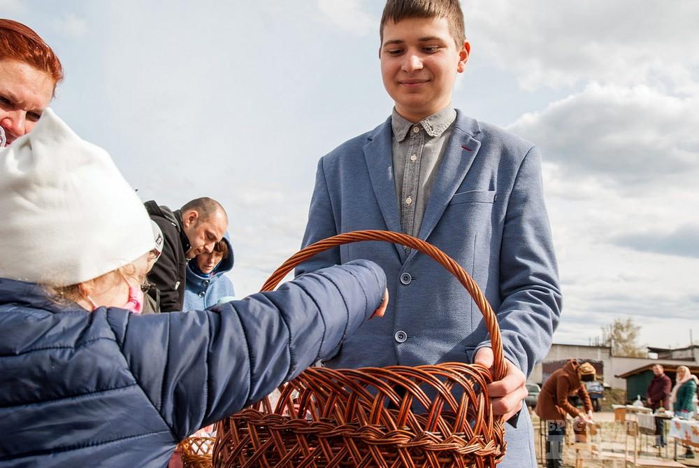 В храм в честь святого праведного Иоанна Русского, который находится в микрорайоне Ковалево в районе жилой застройки между улицами Суворова и Ясеневой, пришло не мало людей. Некоторые из них были в защитных масках. Люди ставили корзинки со снедью на специальные столы на улице.