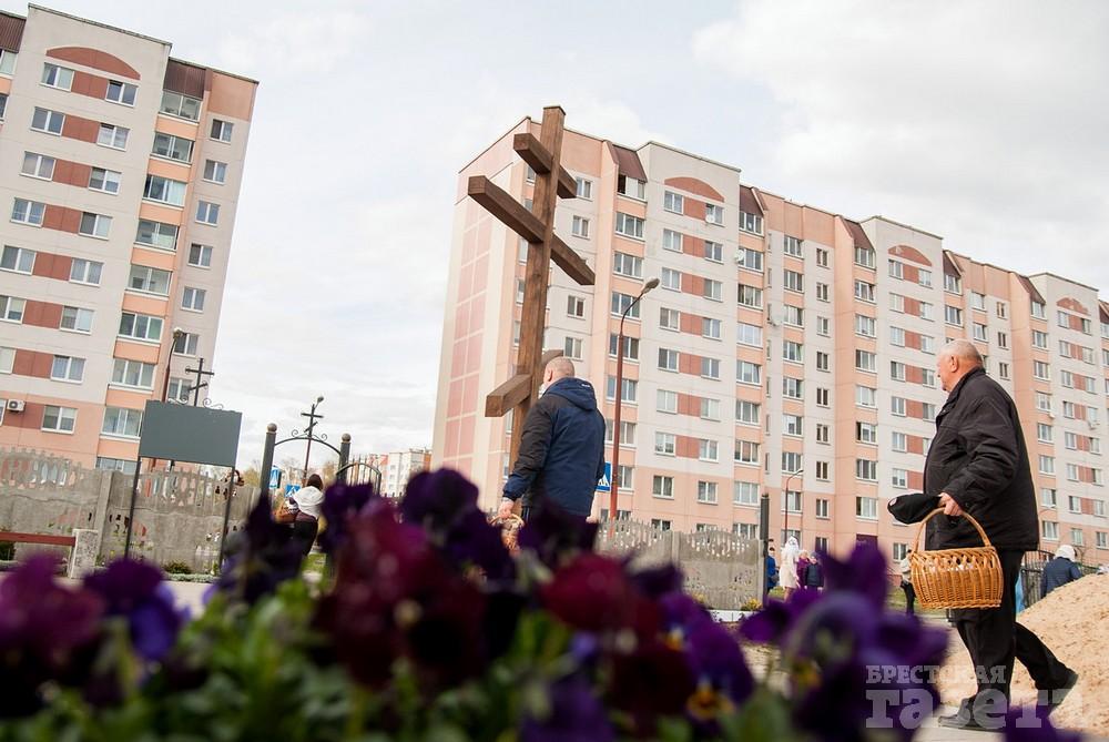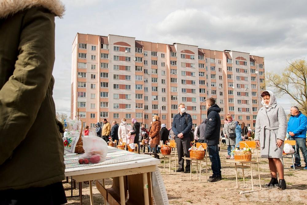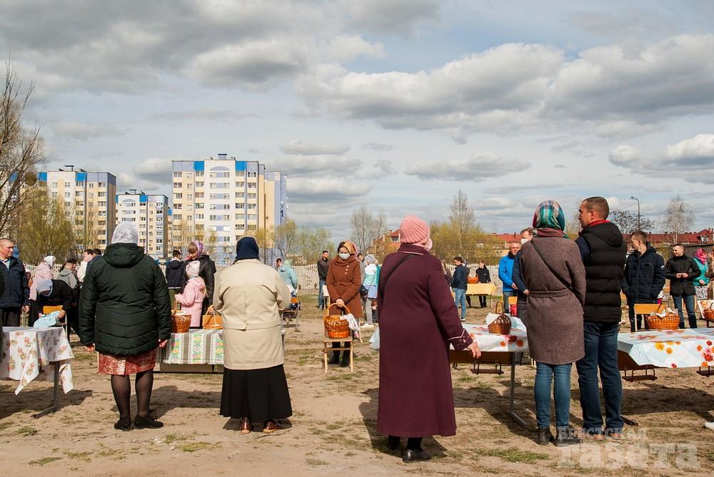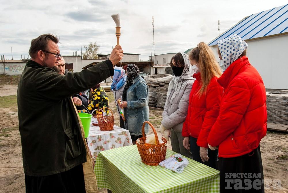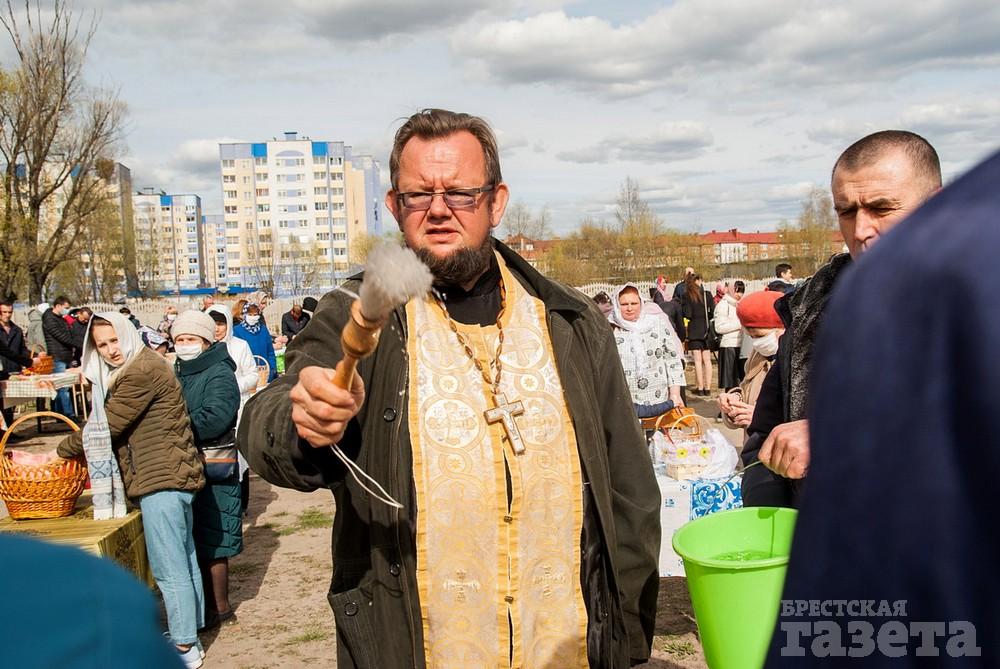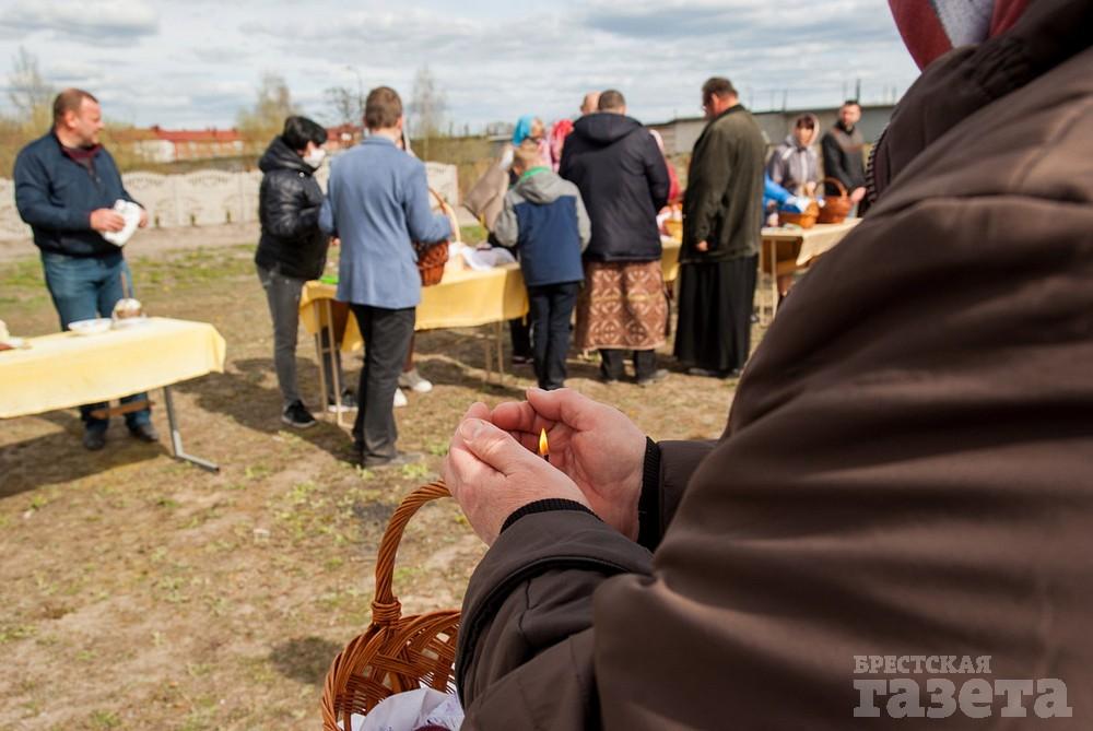 Фоторепортаж. Как во время пандемии верующие брестчане куличи освящали