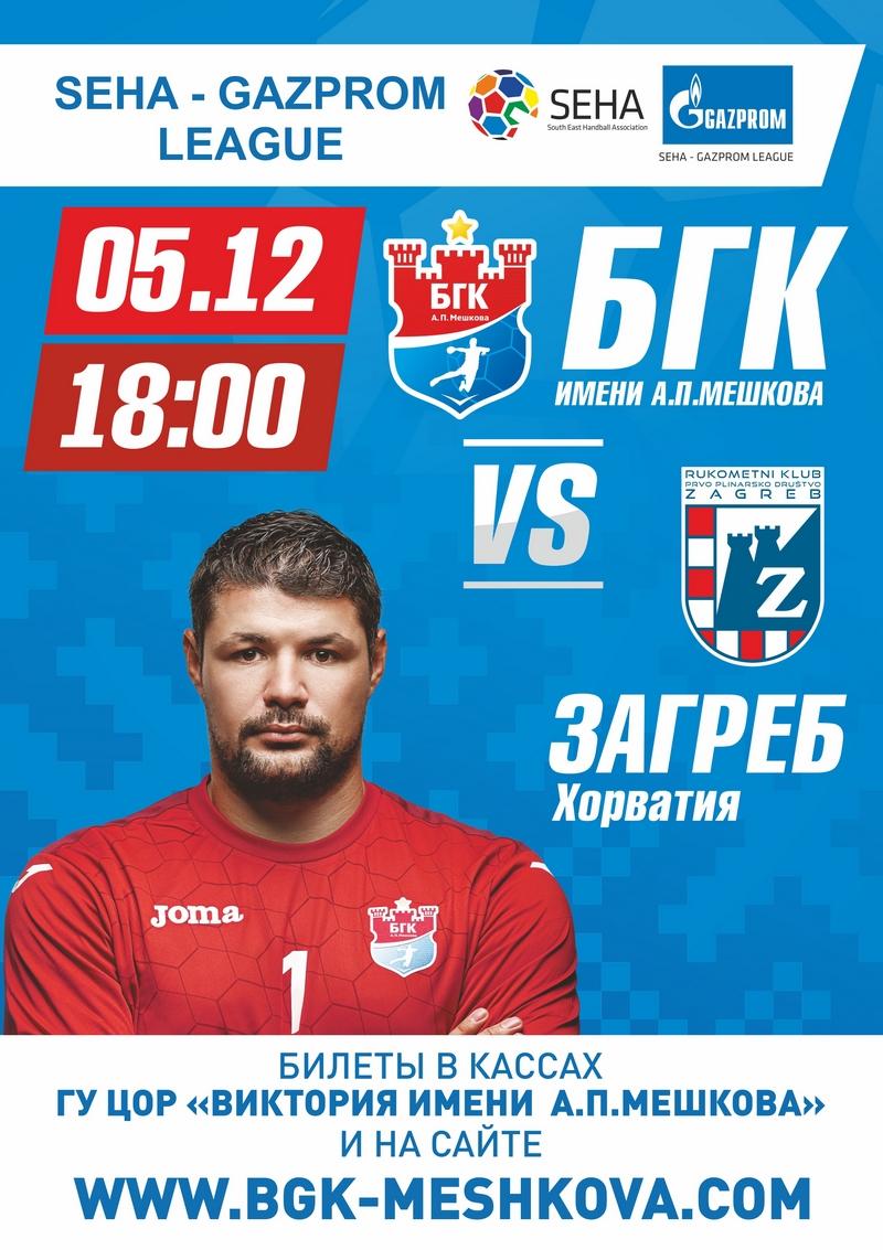 Матч SEHA-лиги против хорватского «Загреба» БГК им. Мешкова проведет во Дворце спорта «Виктория» 5 декабря в 18.00.