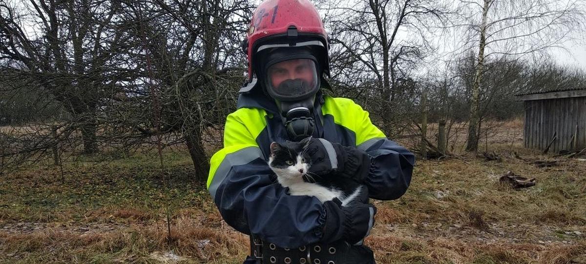 Наверху кот был не против сфотографироваться со своим спасителем.