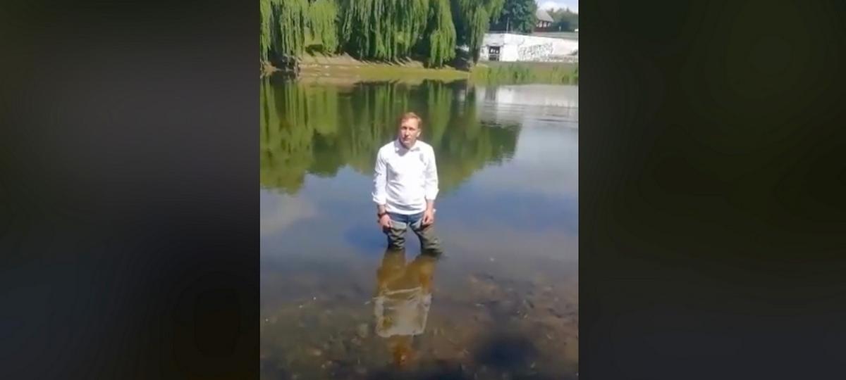 Пресс-конференцию и первую встречу с людьми в качестве кандидата в президенты сопредседатель «Говори правду» Андрей Дмитриев провел 16 июля, стоя по колено в воде в пруду.