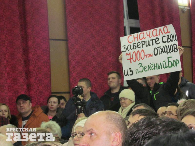 Вечером 15 января во Дворце культуры в д. Тельмы-1 Брестского района состоялось рассмотрение коллективного обращения жителей района и Бреста по вопросам строительства аккумуляторного завода в 4 километрах от областного центра. Местные власти, администрация СЭЗ «Брест», ООО «АйПауэр», представители охраны природы местного и республиканского уровня и санстанции — с одной стороны и около 4 сотен людей, недовольных строительством завода под Брестом, — с другой. Зал ДК, в котором 295 сидячих мест, был заполнен еще до начала мероприятия. И по настроению людей, по плакатам, с которыми они пришли, было понятно: будет жарко.