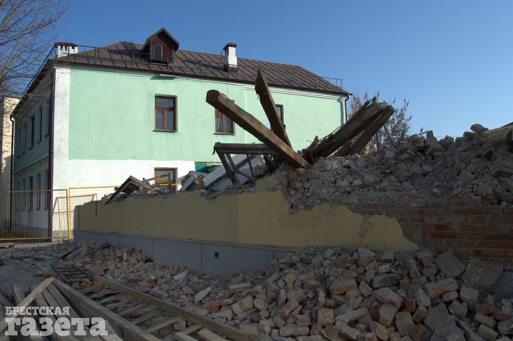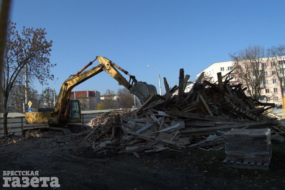 Здание довоенной постройки на углу улиц Гоголя и Ленина в Бресте начали сносить еще в пятницу 2 ноября. Уже во вторник 6 ноября на его месте остались лишь кирпичи да доски.