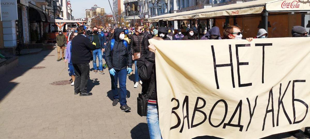 После акции протеста на площади противники завода пошли по центральным улицам Бреста, на улице Советской они развернули растяжку против завода и начали скандировать лозунги «Нет заводу АКБ», «Геноцид не пройдет». Пару раз прокричали «Чиновников на нары».