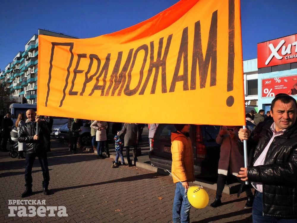 Днем 3 ноября на площадке возле гипермаркета на улице Московской в Бресте кандидаты в депутаты Анна Канюс (Брестский-Восточный избирательный округ №3) и Игорь Масловский (Брестский-Пограничный избирательный округ №4) провели санкционированный пикет. Изначально анонсировалось, что он состоится на площадке возле ДК профсоюзов, но поскольку городской отдел по ЧС проводил там свое мероприятие, было принято решение переместиться через дорогу.