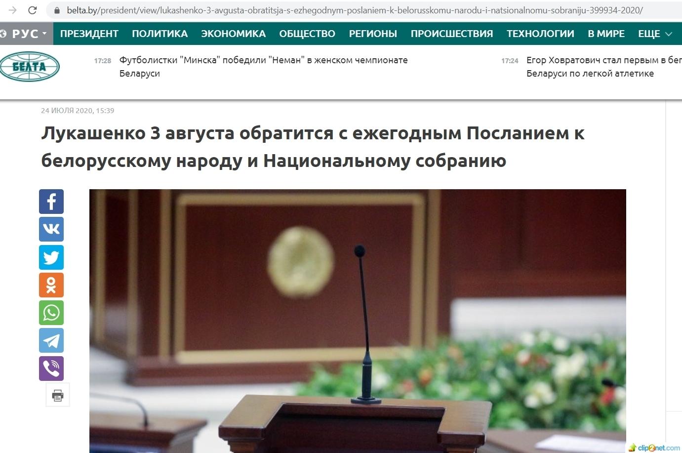 Утром 2 августа, накануне анонсированного послания президента белорусскому народу, несколько крупных негосударственных СМИ сообщили, что 3 августа его не будет и что, возможно, его перенесли на 4 августа.