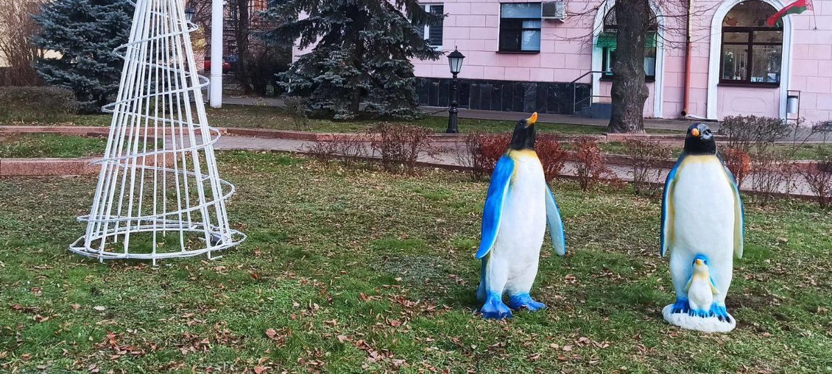 Еще один элемент новогоднего декора от специалистов Брестского ДЭП появился на площади Ленина. Речь о светодиодной елке и семействе пингвинов.