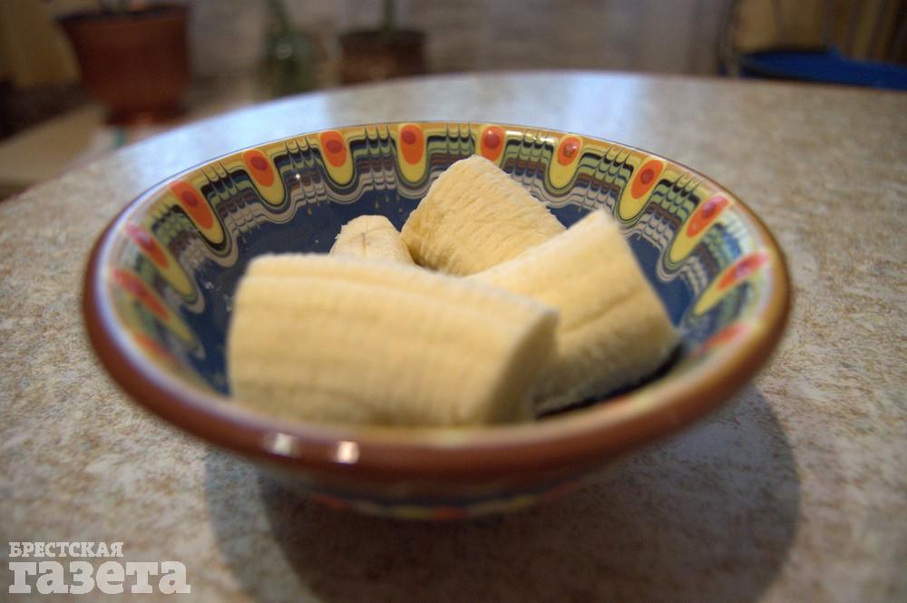 Готовим: Банан очистите от кожуры. Теперь у вас есть два пути. Если нет времени, то разрежьте банан на несколько частей и отправьте в микроволновую печь на 2 минуты при максимальной мощности. Если время позволяет, то заверните банан в фольгу и отправьте минут на 15 в духовой шкаф при температуре 200 градусов.