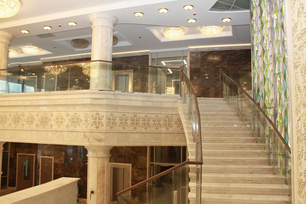 Сейчас на объекте ведется монтаж оборудования, выполняются пуско-наладочные работы, идет расстановка мебели и работает клининговая компания. Отмечается, что вся мебель — белорусского производства: компаний «Пинскдрев» и «Бобруйскмебель». Лифты — «Могилевлифтмаш», люстры лидской компании «Каскад», паркет «Косвик» из Заславля, на стенах — гомельские обои и декоративная штукатурка.