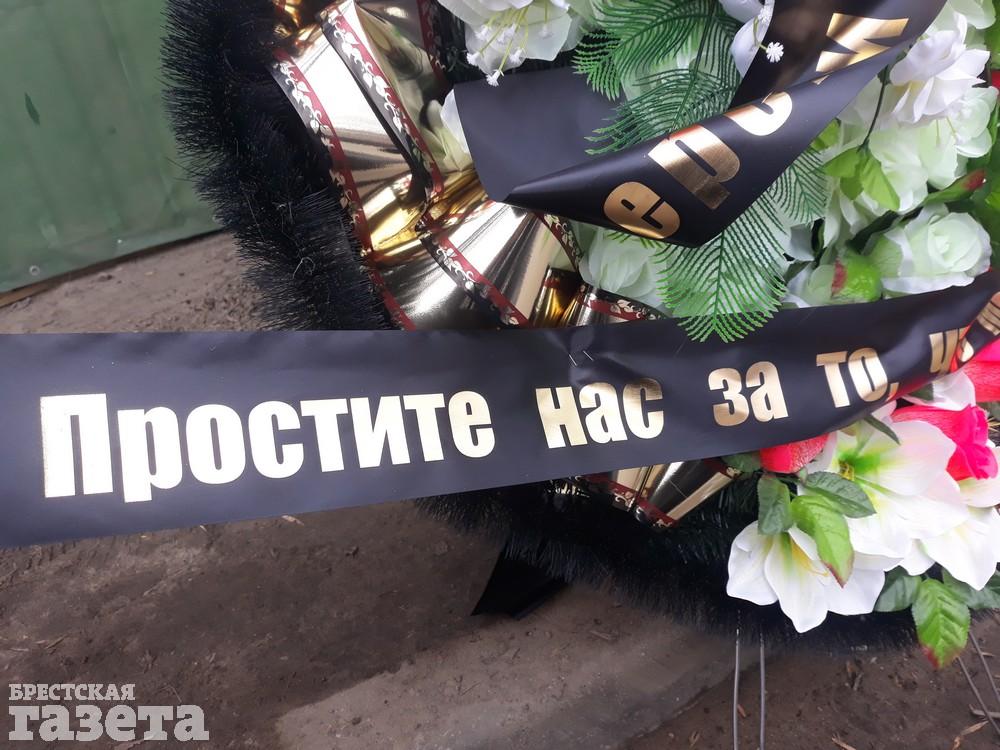 «Простите нас за то, что мы не сразу опомнились», «Гражданам Бреста, зверски убитым фашистами в годы ВОВ», — такие надписи размещены на лентах. По словам Виталия Казака, он изготовил их за свой счет, но каждый венок подписан от жителей одного из микрорайонов города.