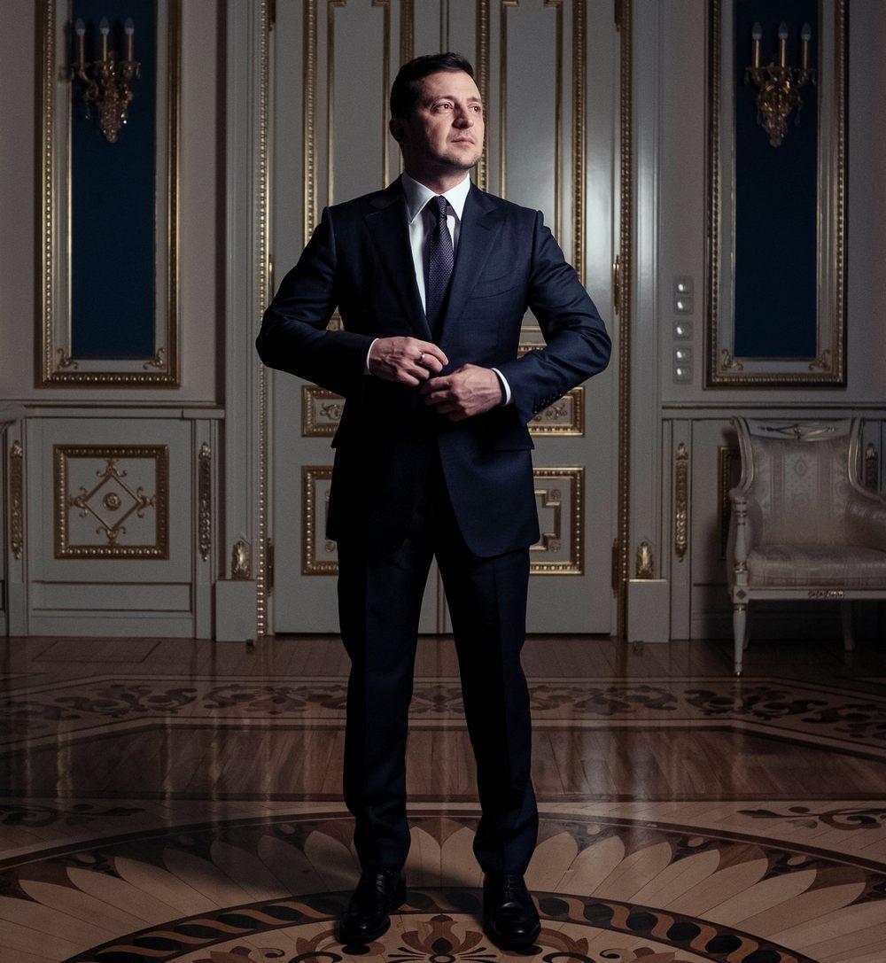 https://www.theguardian.com/internationalВнутри статьи — еще два снимка с этой фотосессии. На них Зеленский снят в том же интерьере: он поправляет пиджак и держит руку в кармане.