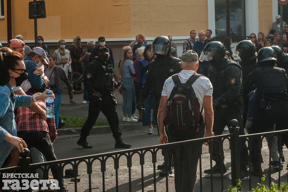 Если в прошлое воскресенье протестующих в Бресте разгоняли водометом, то сегодня распыляли в лицо газ. Как пояснили в МВД, «для пресечения противоправных действий протестующих».