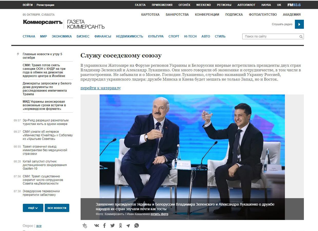 «После того как украинские девушки в вышиванках поднесли белорусскому гостю хлеб-соль, главы государств в одном автомобиле отправились на переговоры. Прежде чем скрыться за закрытыми для прессы дверями, оба признались друг другу в особой близости», — пишет издание.