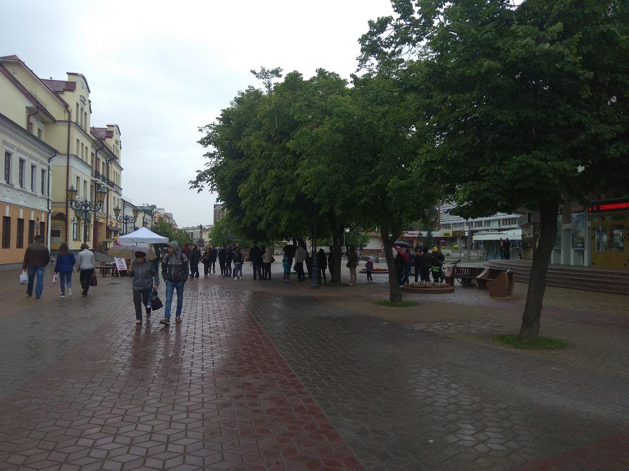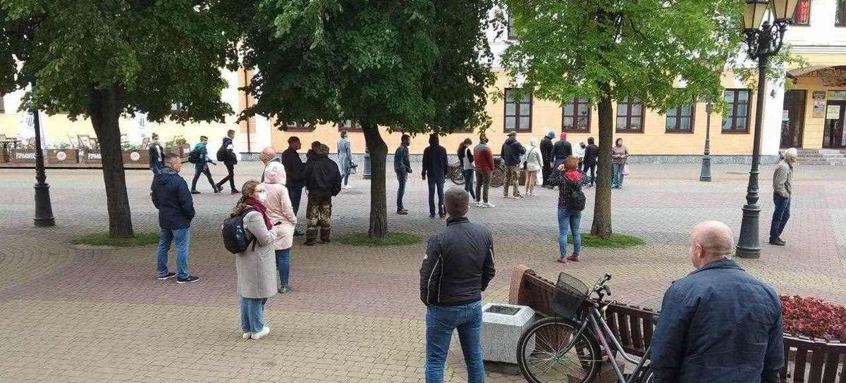 Инициативная группа в поддержку Светланы Тихановской продолжает собирать подписи в городах Беларуси. Брест не стал исключением. Люди начинают выстраиваться в очереди возле кинотеатра «Беларусь».