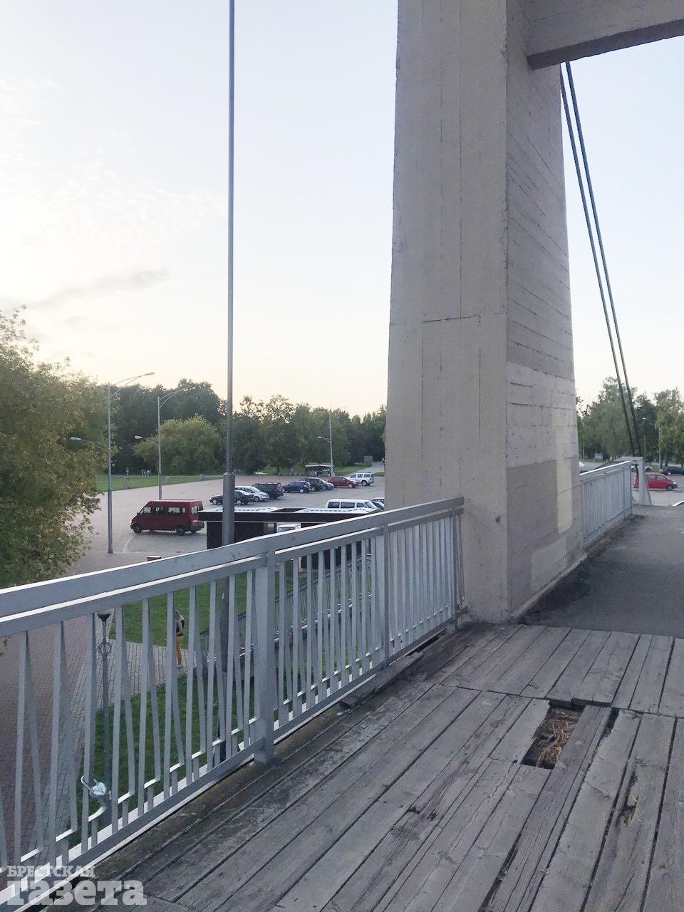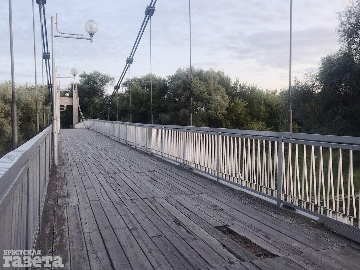 Подвесной мост у Брестской крепости-героя нуждается в ремонте: под ногами шатаются доски и самые настоящие дыры видны даже невооруженным взглядом.