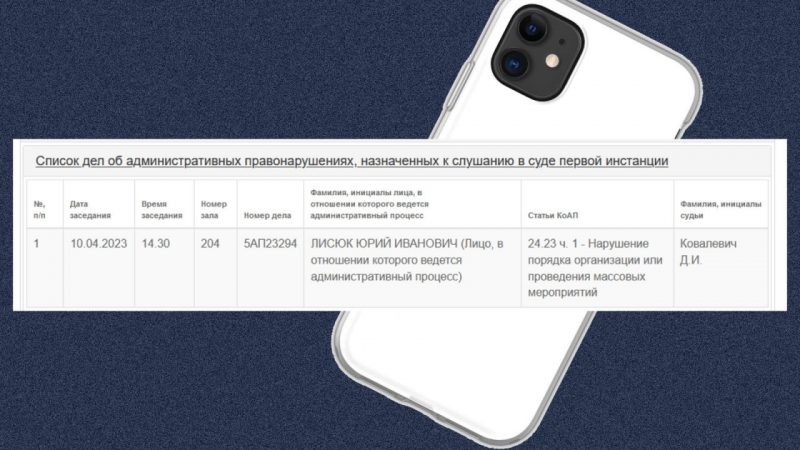 В суде Березовского района сегодня рассматривали административное дело 54-летнего токаря ОАО «Нарутовичи» Юрия Лисюка. Поводом стал бело-красно-белый чехол на смартфоне мужчины, сообщает брестская «Весна».
