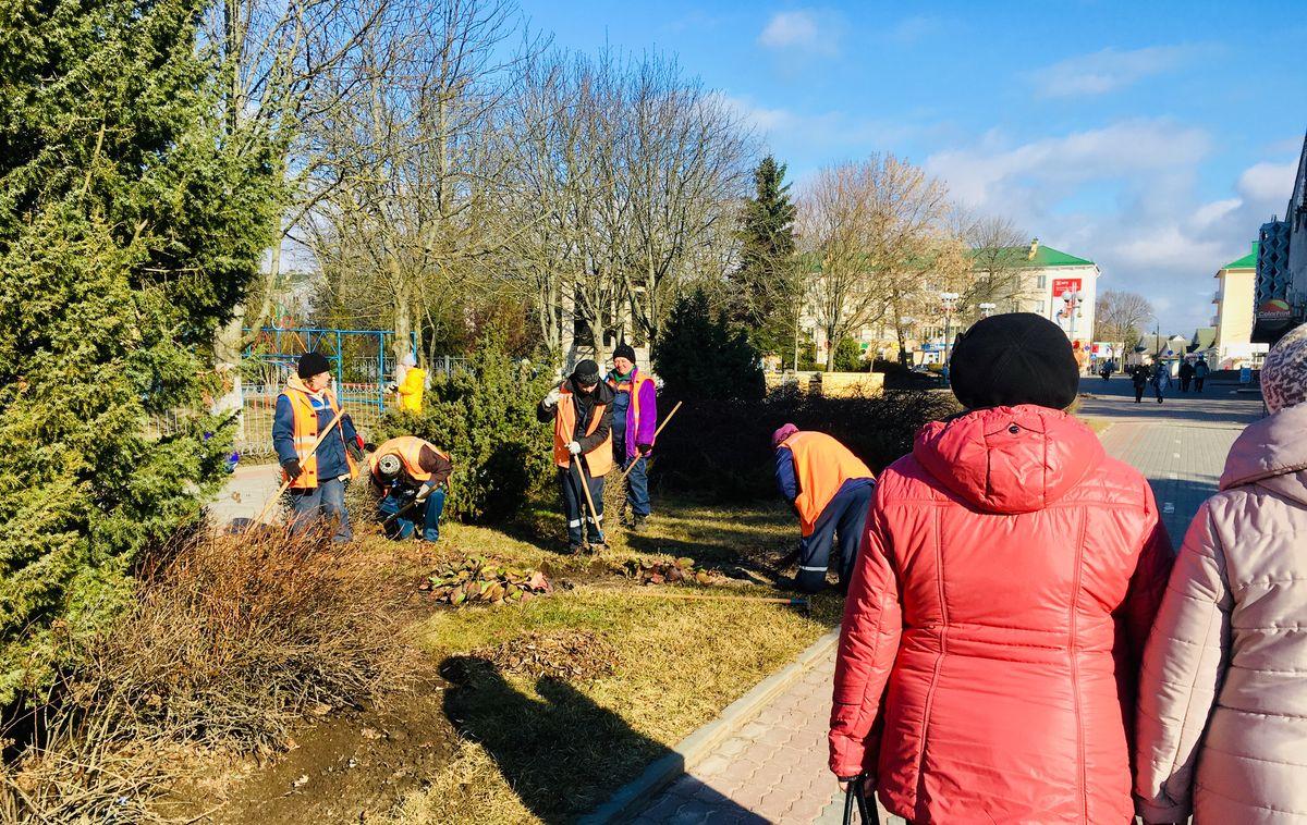К наведению порядка подключились предприятия. На здании «Белтелекома» обновили фирменную эмблему, на территории завода «Торгмаш» покрасили столбы, заменили выцветшие за зиму билборды. Представители службы озеленения городского ЖКХ приводят в порядок городские клумбы и газоны.