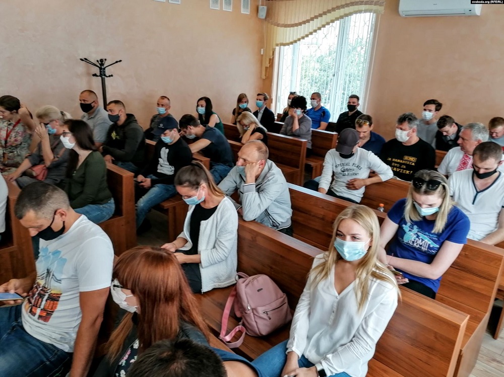 Административное дело рассматривал судья Юрий Казакевич, а адвокат Андрей Щепетков защищал Сергея Тихановского. На заседании суда собрался полный зал людей. В основном пришли сторонники блогера и журналисты.