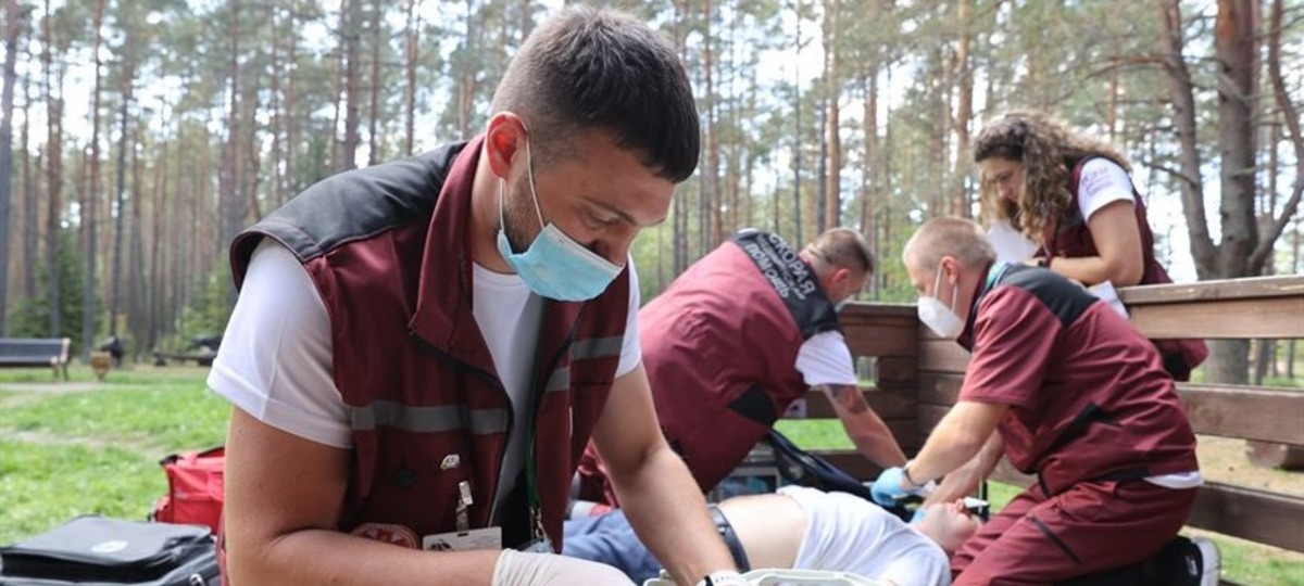 «Андрей Федоров, Михаил Четырбок и их руководитель врач скорой помощи Александр Горбач — реанимационная бригада из Барановичей. Эти мужчины по-настоящему знают, что такое работа в команде».