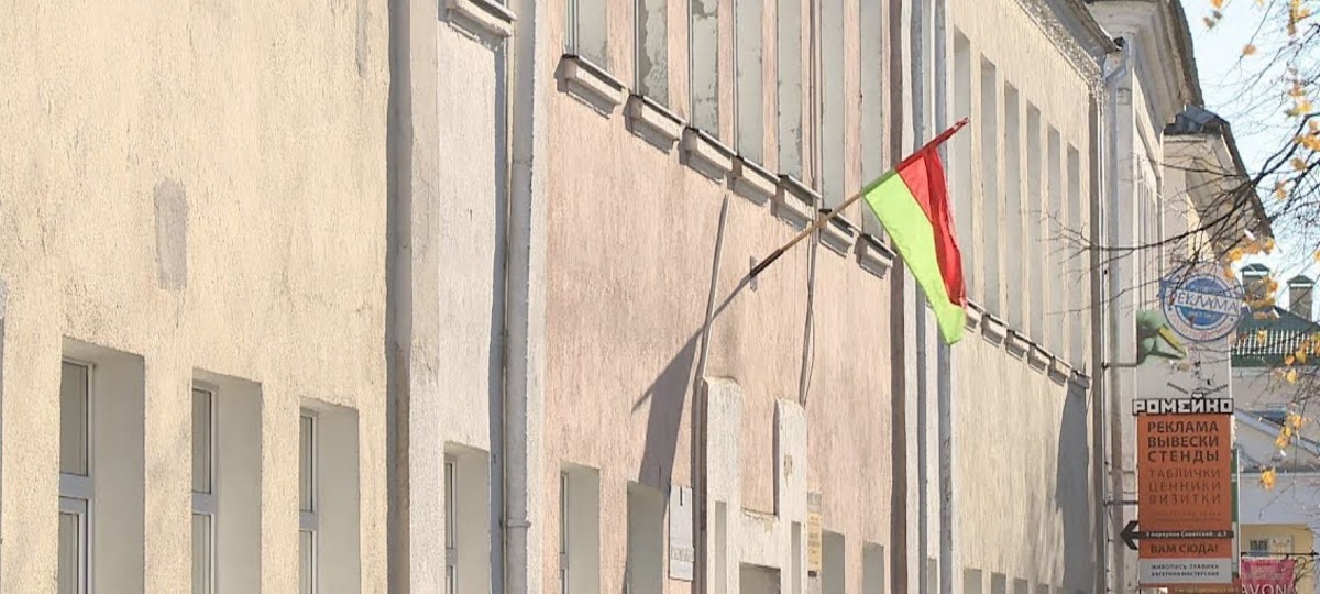 11.03.2025 14:30 Госфлаг Беларуси на здании. Скриншот видео. Источник фото