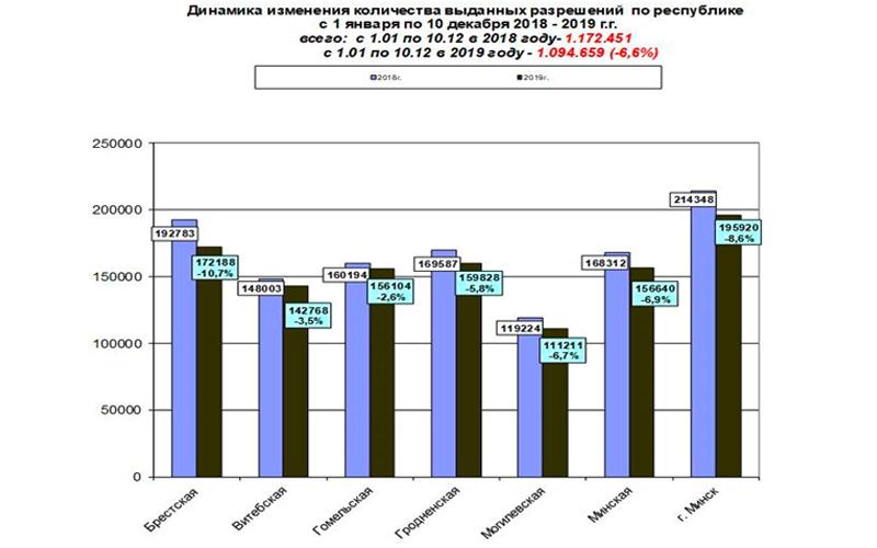 Самыми же примерными и законопослушными оказались автовладельцы Гомельщины. Здесь недобрали до прошлогоднего уровня лишь 2,6%, при том, что в среднем по стране уменьшение выданных разрешений составило 6,6%.