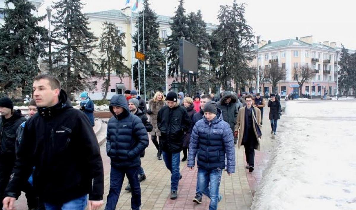 Протестующие против декрета о тунеядцах собрались на главной площади областного центра в воскресный полдень. По словам очевидца, с которым побеседовала корреспондент «БГ», в какой-то момент там было больше 100 человек, но, когда толпа двинулась в сторону парка, осталось 70 — 80.