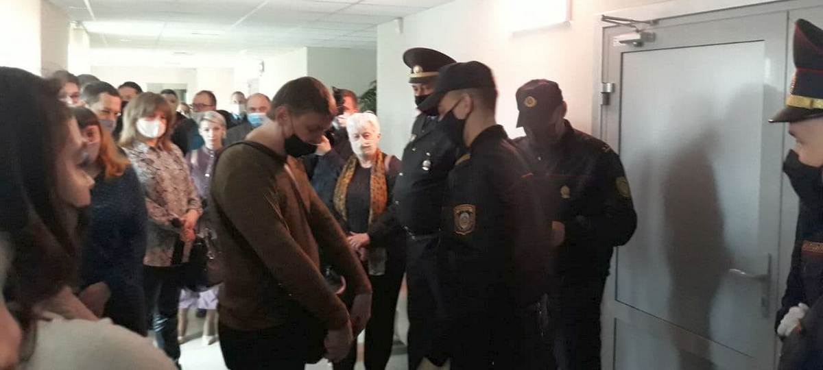 После того, как на судебный процесс не попало много публики, те, кто все-таки попали на заседание с самого начала, отказались сидеть на лавках в зале суда. Судья Инна Клышпач сказала всем рассаживаться – но люди продолжали стоять. После этого судья объявила, что все кроме обвиняемых будут удалены из зала если не подчиняются – и публика нехотя расселась. А обвиняемые остались стоять, сообщают правозащитники.