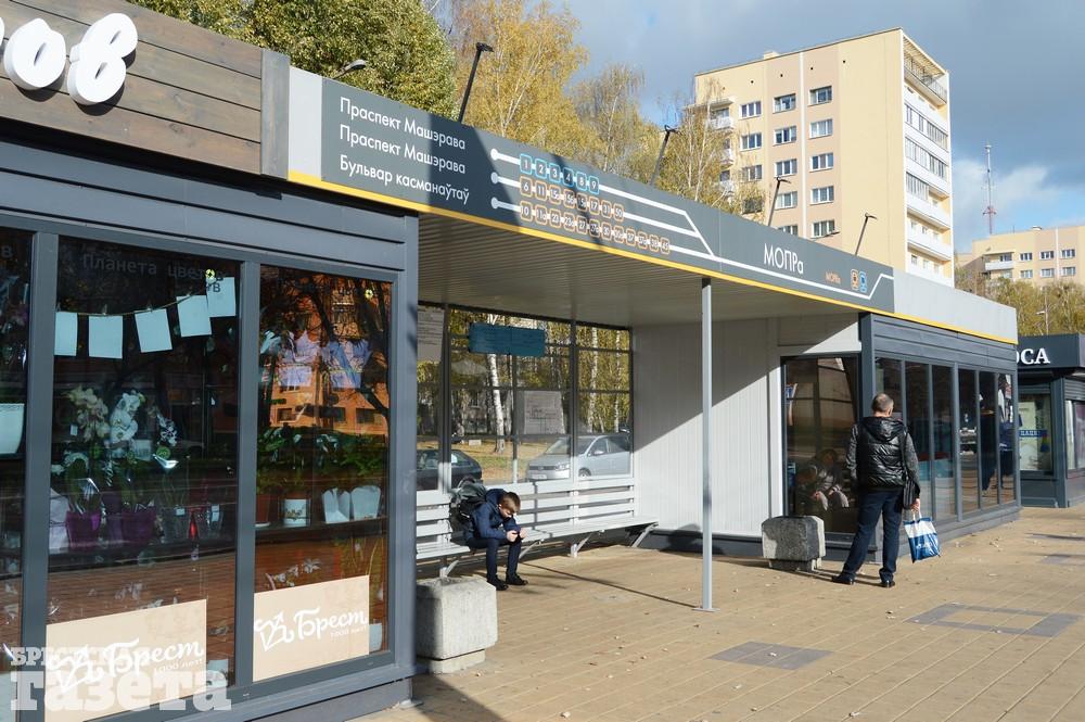 Напомним, к 1000-летию в Бресте обновляли остановки общественного транспорта. В конце лета изменения коснулись и остановок МОПРа. На них установили новые типовые павильоны ожидания и подписали название на латинице, транслитерируя с русского языка, и на белорусском – МАДРа.