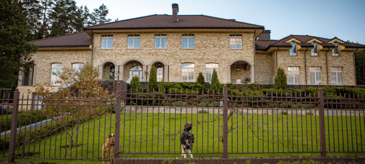 Особняк экс-банкира расположен недалеко от Минска. Сейчас там находятся служебные машины, территорию охраняют мужчины с автоматами, на спинах которых написано «Милиция». Обстановка в целом спокойная.
