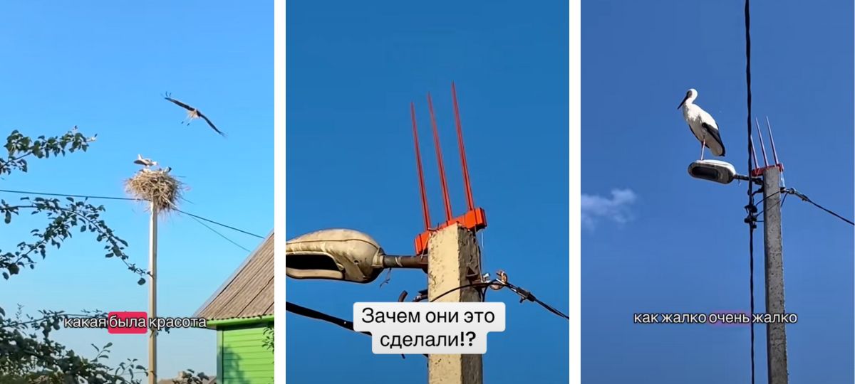 В TikTok бурно обсуждают видео, в котором женщина возмущается тем, что в Пружанском районе на месте аистиного гнезда, расположенного на столбе, установили металлический «трезубец». Это сделано для того, чтобы птицы не вернулись на этот столб и не создавали проблемы с электросетями.