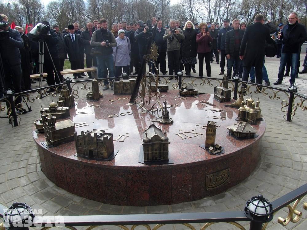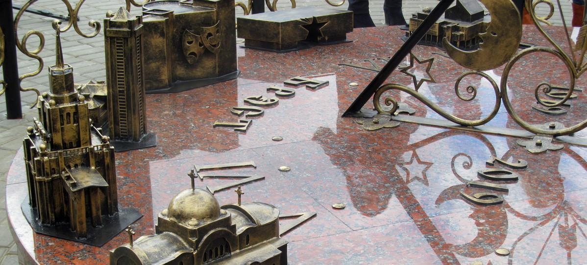 В Бресте на набережной Франциска Скорины 22 марта состоялось торжественное открытие нового арт-объекта – солнечных часов, на которых размещены уменьшенные копии знаковых объектов города над Бугом, таких как Холмские ворота, здание ЦУМа, вокзал, памятник Тысячелетию.