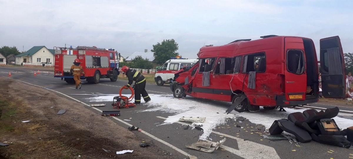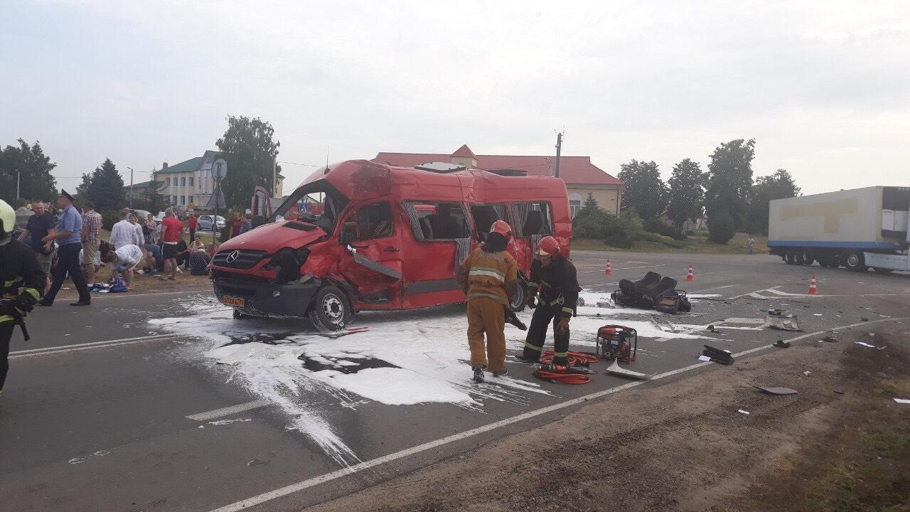 Страшная авария произошла утром 21 июня в Видомле Каменецкого района. Как сообщают пользователи в соцсетях, у фуры отказали тормоза и она буквально протаранила маршрутное такси, которое ехало в Брест из Беловежской пущи. По предварительным данным, пострадали около 17 человек. О погибших информации на 11 утра нет.