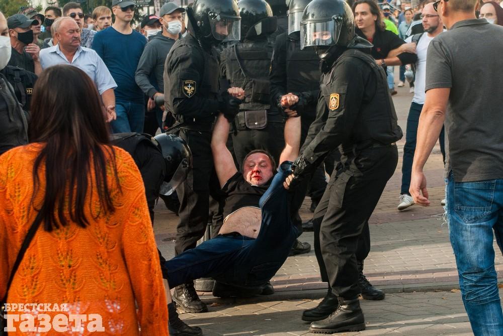 Задержание на мирной акции протеста 27 сентября в Бресте. Фото: