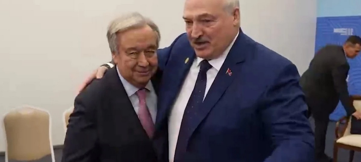 30.10.2024 16:29 Лукашенко с генсеком ООН. Скриншот видео. Источник фото