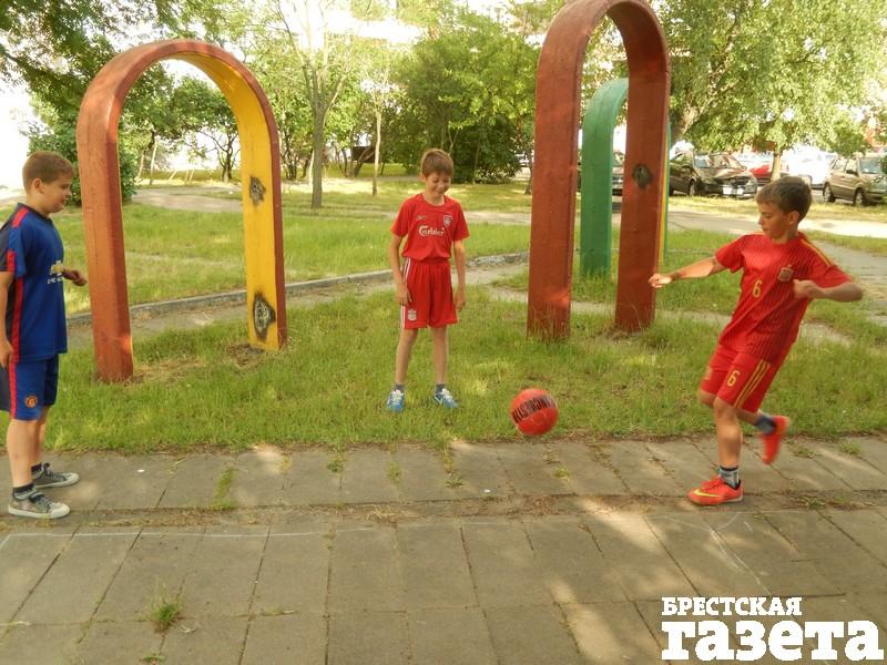 На детской площадке, которая находится на стыке ул. Ленинградской, Орловской и Партизанского проспекта, подростки Владик, Максим и Дима играли в мяч.